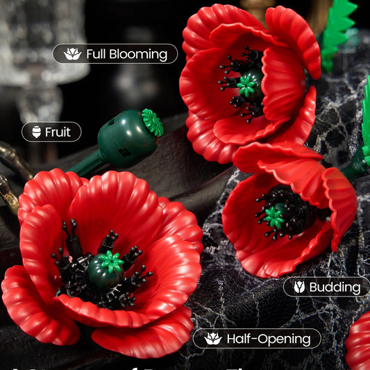 Red Flower Building Blocks Set | Botanical Brick Kit for Adults Home Decor