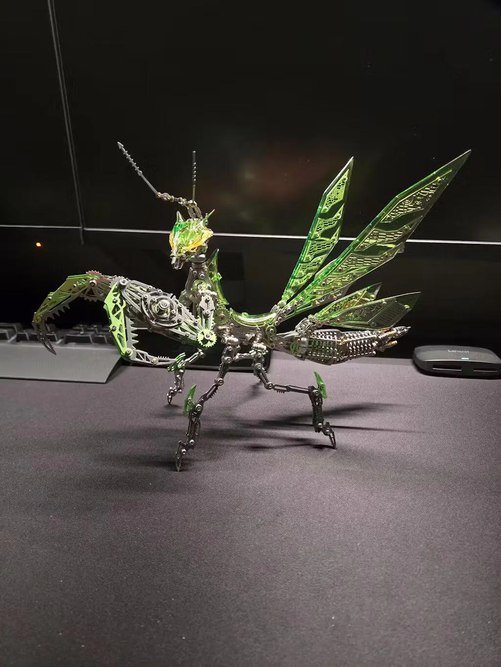 - Apparence unique : Ce modèle d'insecte mante religieuse est assemblé à l'aide de plus de 1 000 pièces métalliques, dont des plaques, des vis et des écrous. La coque en plastique violet reproduit parfaitement la forme de la mante religieuse, tandis que les pattes avant et les yeux sont dotés de lampes magnétiques. Les ailes délicates, composées de fines pièces métalliques, complètent son design réaliste.